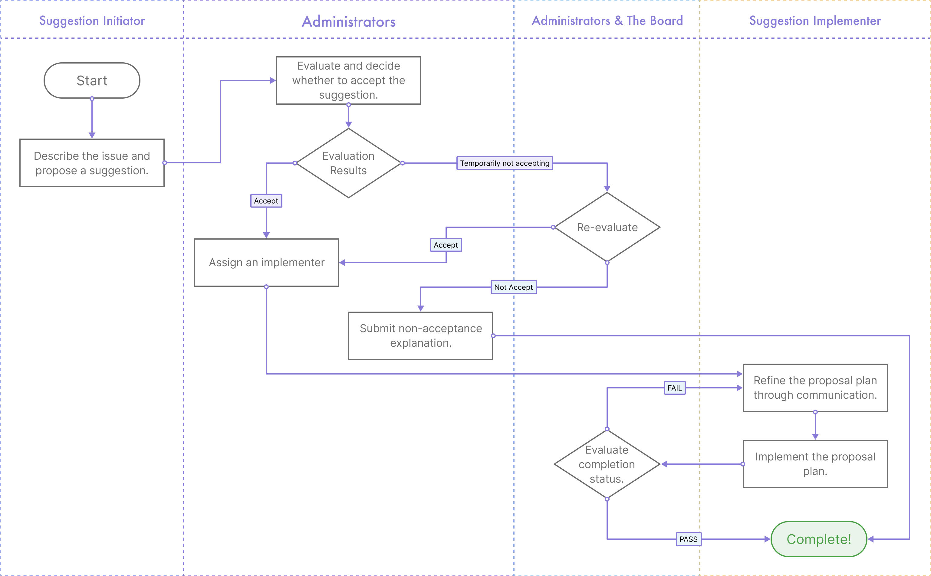 Management had no visibility into which suggestions were submitted, under review, or implemented — leading to duplicated effort and missed opportunities.